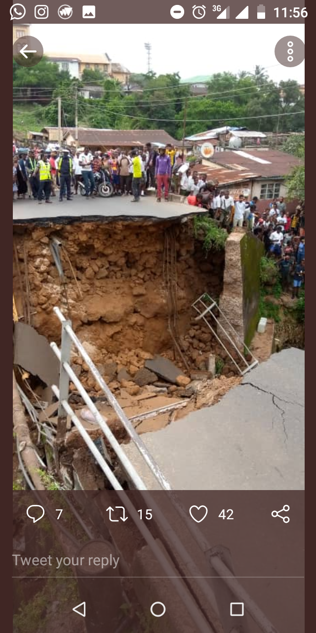 The bridge carved in after a heavy downpour within the area.The tragedy has resorted to some residents requesting authorities to review similar infrastructures within the city, such as the Aberdeen Bridge, which according to sources is over 35 years old without any form of maintenance.