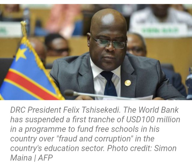 The World Bank said Tuesday it was suspending the first tranche of USD100 million in a programme to fund free schools in the Democratic Republic of Congo over “fraud and corruption” in the country’s education sector.