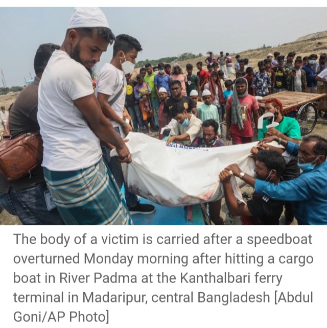 Hossain, according to News Agency, said the bow of the passenger boat was destroyed when the speedboat smashed into the side of the transport vessel and quickly sank.