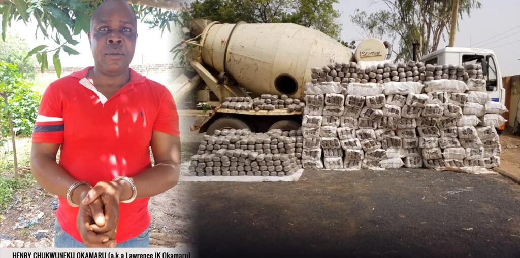 Wanted drug kingpin behind the 2000.6kg Cannabis Sativa seized in a concrete mixer truck in Adamawa State on 2nd December 2021, Henry Chukwuneku Okamaru (a.k.a. Lawrence Ik Okamaru) has been arrested in Ondo state after five months of a search by operatives of the National Drug Law Enforcement Agency, NDLEA.