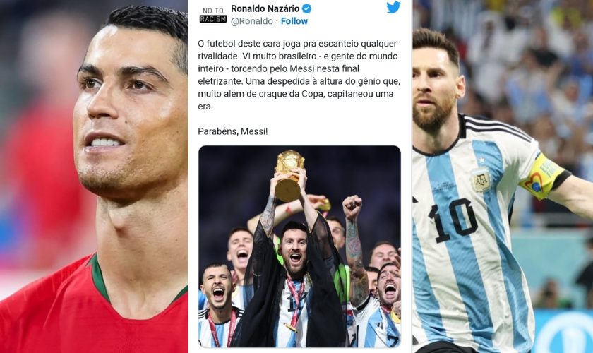 Lionel Messi received congratulations from Brazilian star Ronaldo Luis Nazario de Lima after Argentina defeated France on Sunday in the World Cup final in Qatar.