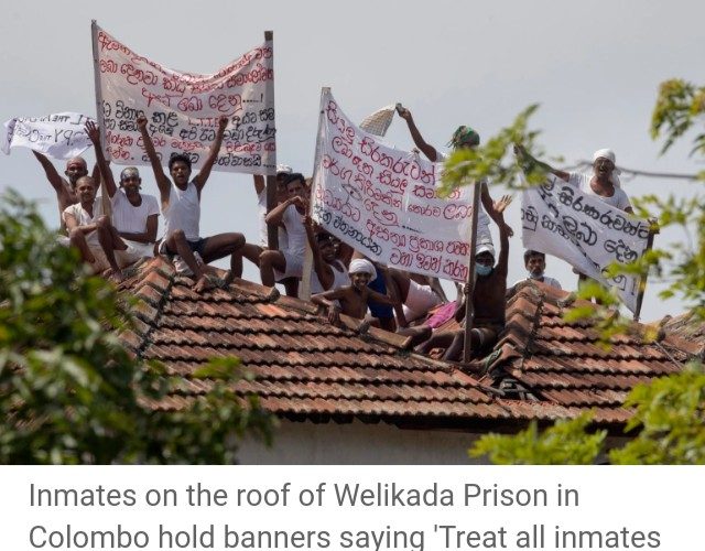 Several inmates protested on the roof of a prison in the capital, Colombo, holding up banners demanding equal treatment and bail consideration, the Associated Press reported on Friday.