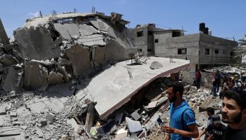 Palestinians marked the first day of Eid al-Fitr religious holiday under relentless aerial bombardment with Gaza’s health ministry saying at least 87 people, including 18