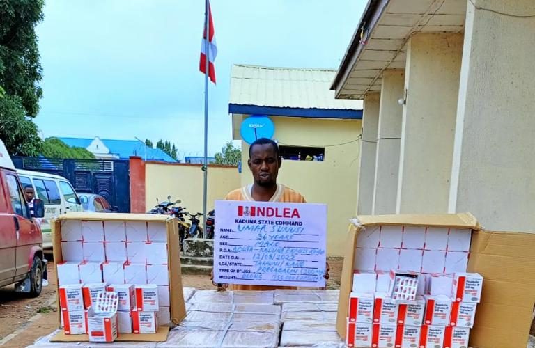 In Kaduna, a drug dealer Umar Sanusi, was arrested on Friday 12th August during a follow up operation in Kano and brought back to Kaduna where his consignment of 50 cartons of pregabalin 300mg, containing 750,000 capsules, weighing 375kgs earlier seized along Abuja-Kaduna expressway was counted and weighed in his presence.